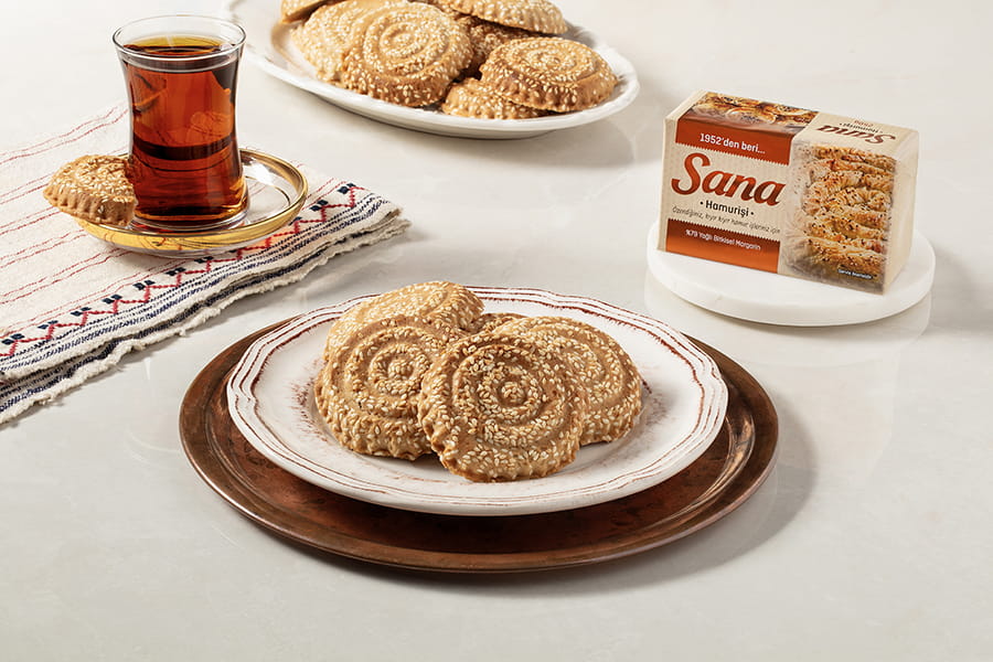Sana Hamurişi %79 bitkisel yağ içerir. Trans yağ içermez. Helal Sertifikalıdır.
