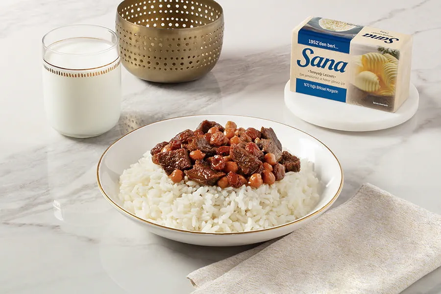 Sana Tereyağı Lezzeti %70 bitkisel yağ içerir. Trans yağ içermez. Helal Sertifikalıdır.